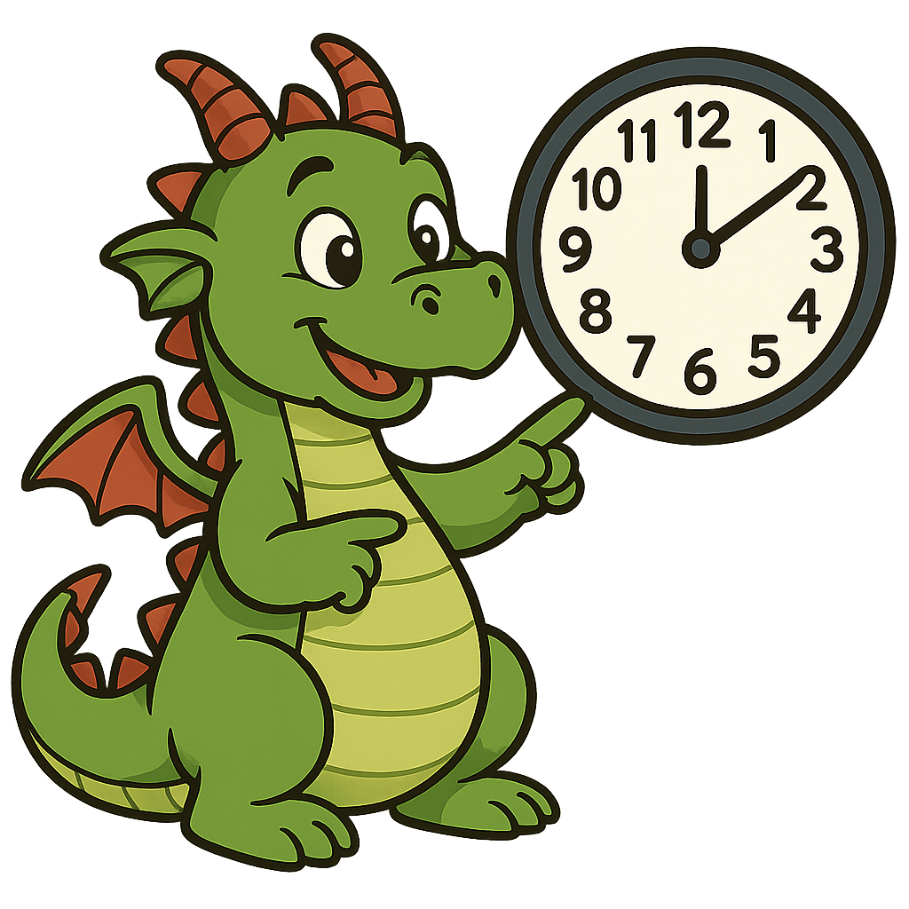 Super-Dubber Drache schaut auf die Uhr
